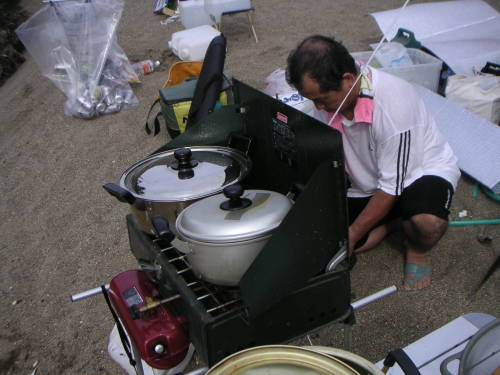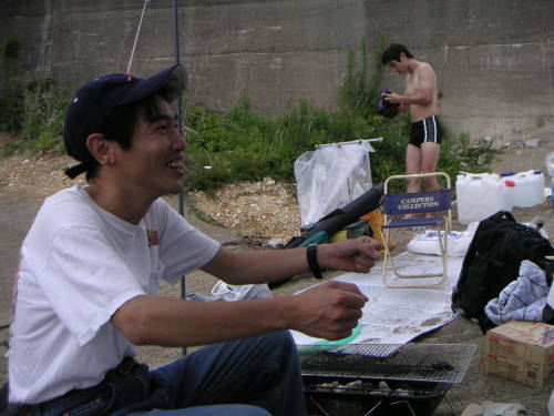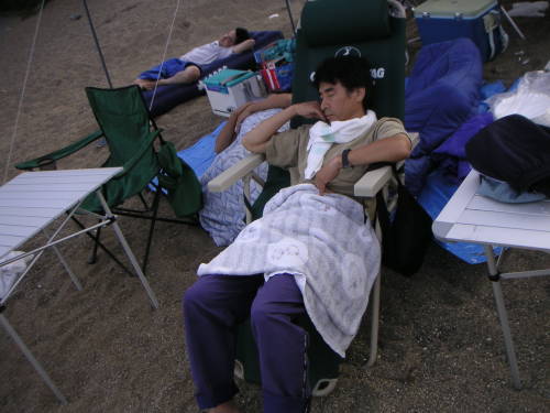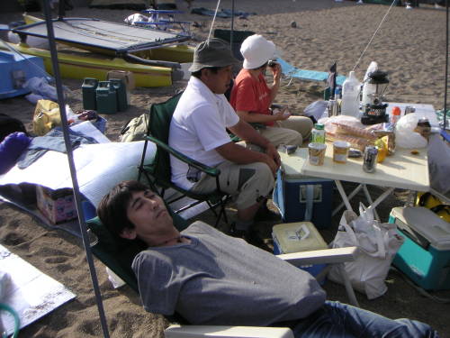 今年も恒例の(アンオフィシャルですが)大阪男保連のキャンプです。私(きたに)は家庭の事情で途中参加でした。 まずは先発隊が夜中に到着。暗闇のなかで設営です。 次の日は朝からビールにゲームに焼肉。 そして後発隊の今福の岡田さん一氏くん到着。海に入る人、昼寝の人それぞれキャンプを満喫。