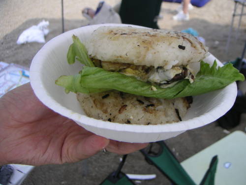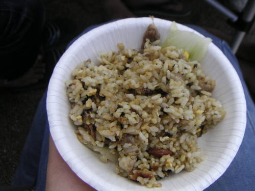 最終日は約束どおり私が飯担当。朝はベーコンレタスライスバーガー。昼は恒例のベーコンレタスチャーハンでした。